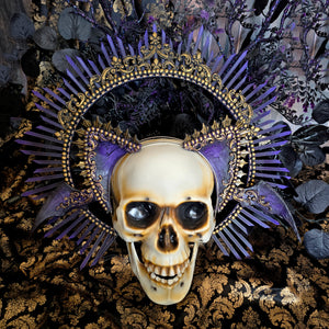 Gothic Bat Wing Cat Ear Headpiece with Halo Crown – Fantasy Cosplay Halo in Purple and Gold