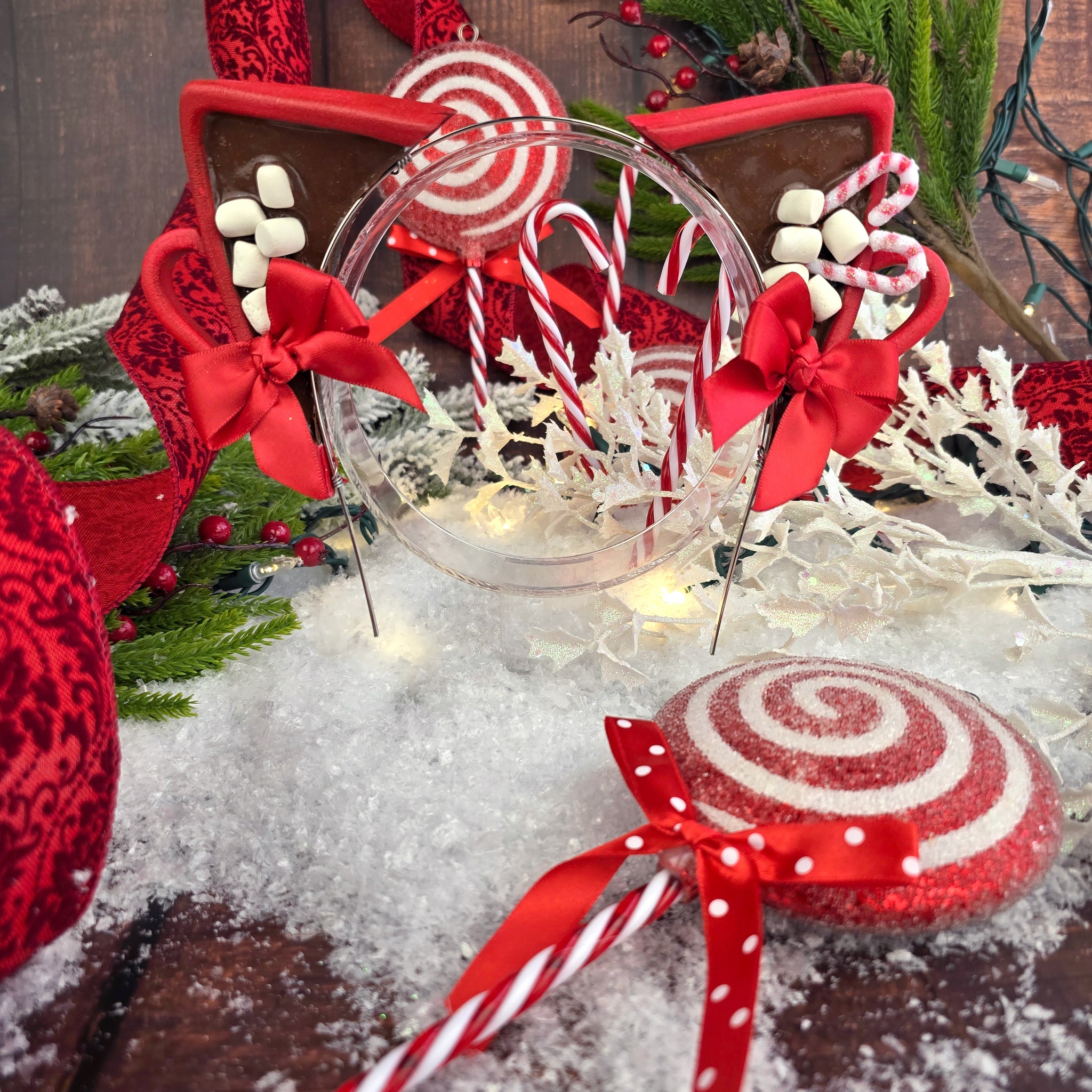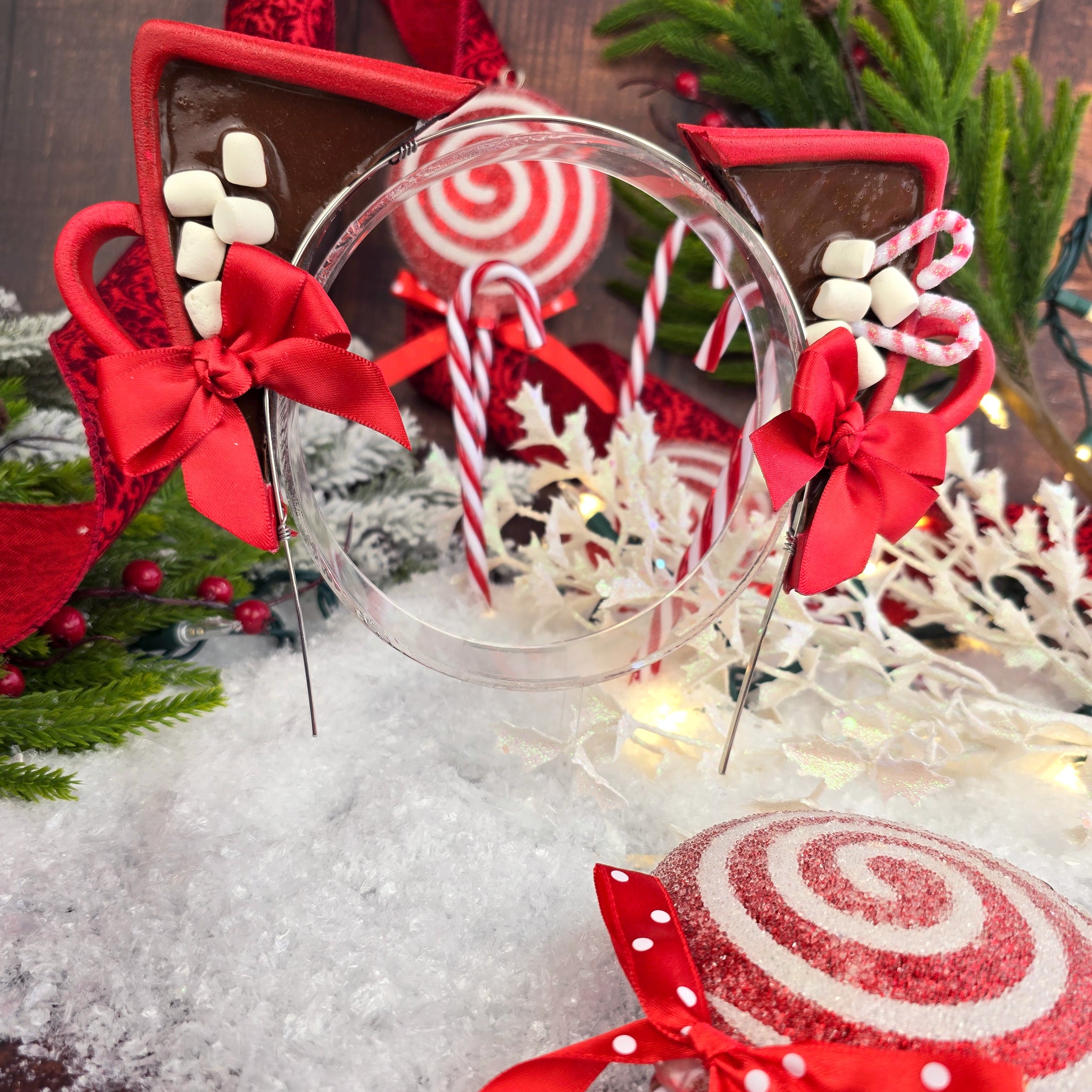 - Inside the ear features a faux hot chocolate mix with faux floating handmade mini marshmallows and two cute peppermint sticks on one side